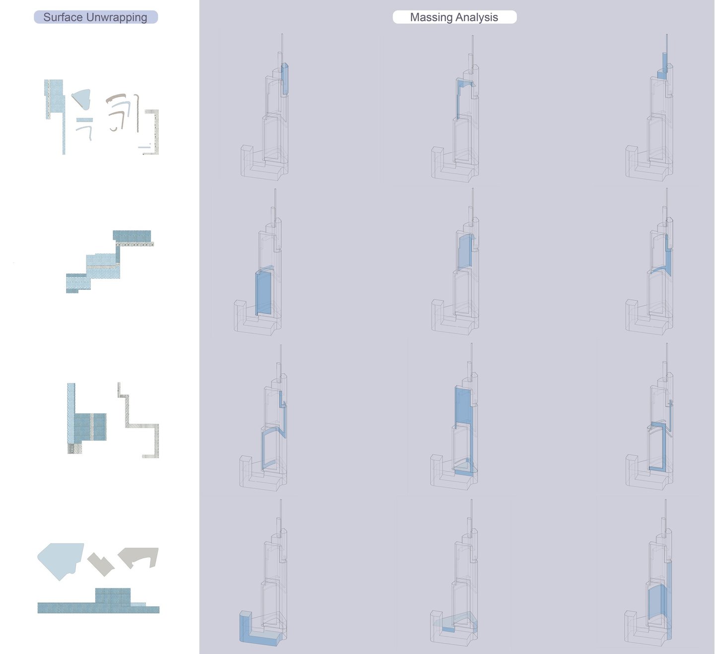 An experiment on quick physical model building using a 3D model to generate unwrapped surface textures to be printed out and directly applied to the base museum board model.